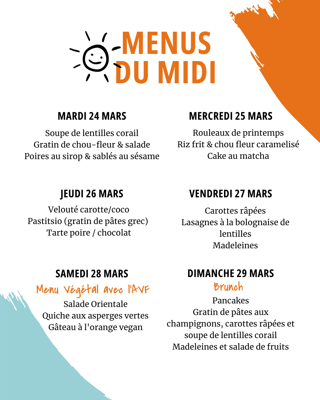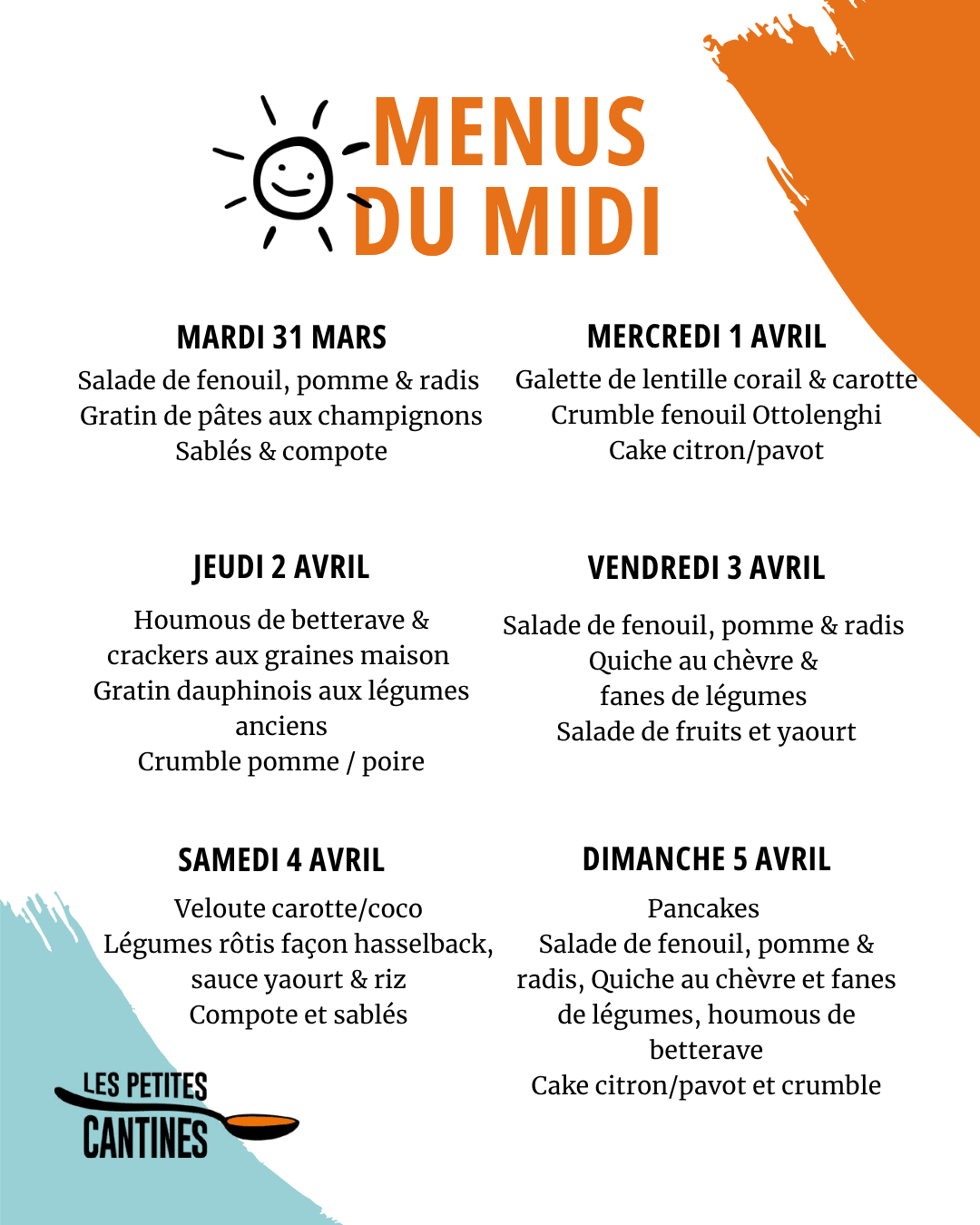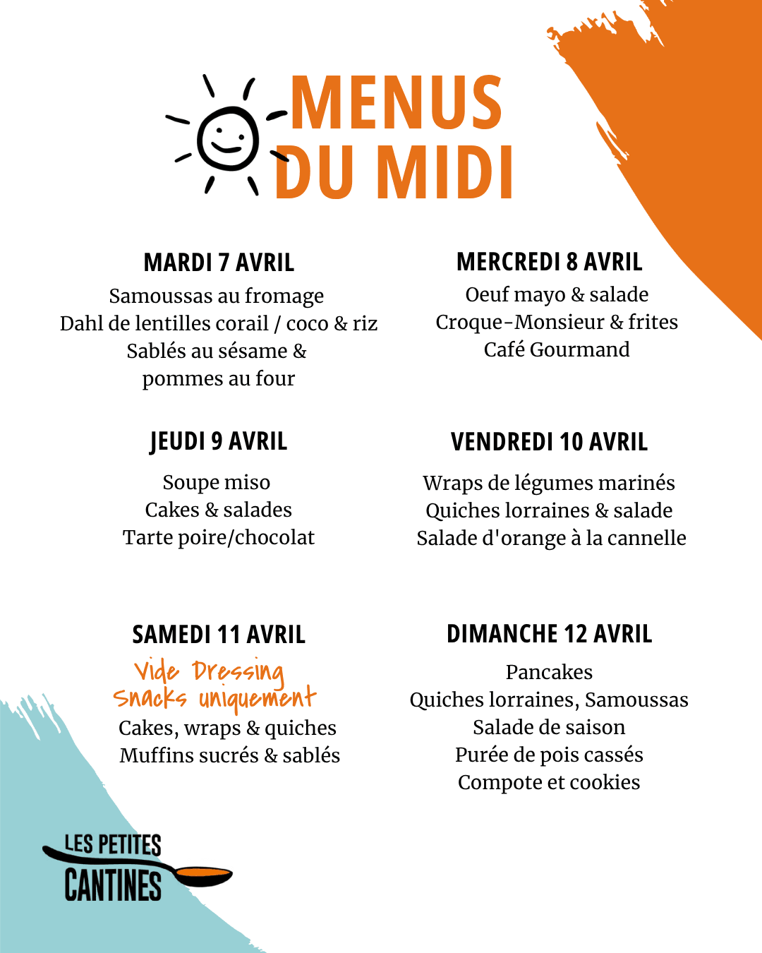 Les menus sont susceptibles de changer en fonction de nos stocks du jour !